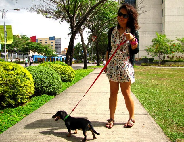 cute dog ! really love your polka dress ! and your sandals are fantastic !
