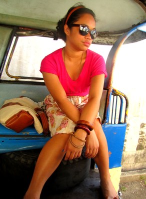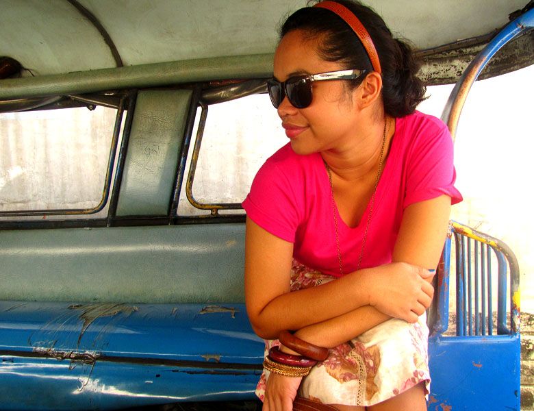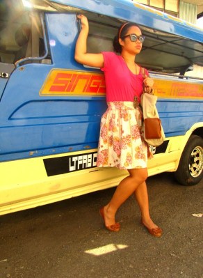 your bright and sunny outfit works perfectly with your jeepney ride! you look great in bright pink!