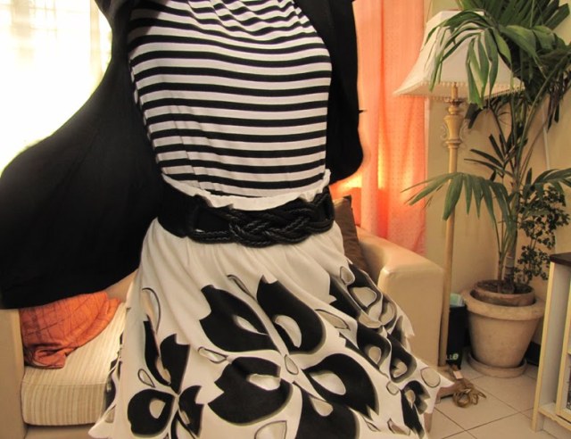 black and white floral skirt with cutouts – lil’ sister’s (yey!)