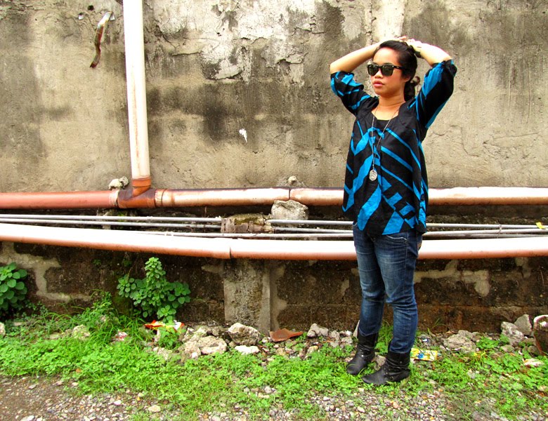 blue and black top – thrifted