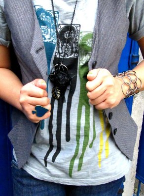 | Aimee’s outfit: pink bandage dress with sleeve cutouts – primal rave | chain bag – vintage leopard heels – people are people | necklace and bangles – downtown finds |